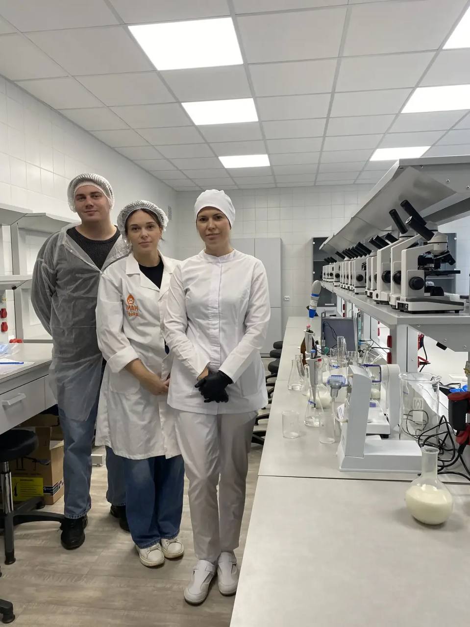 Ветеринарная испытательная лаборатория СББЖ Волосовского района провела свои исследования в рамках этого конкурса. Наши специалисты изучили физико-химические показатели: массовая доля жира, массовая доля белка, плотность, кислотность, точка замерзания. Кроме того, продукт проверили на соматические клетки и наличие антибиотиков.