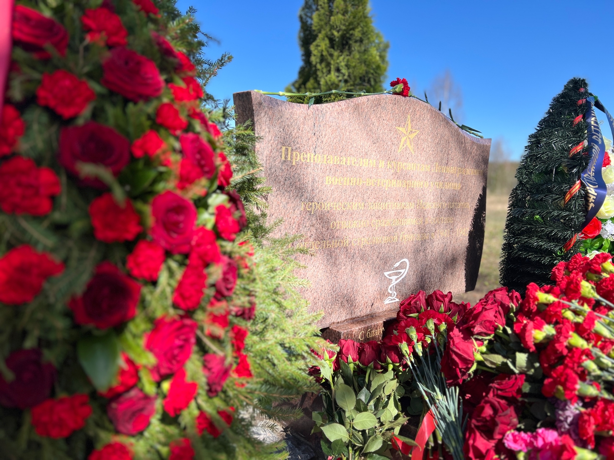 В Год Команды Победы государственная ветеринарная служба установила памятник «Преподавателям и курсантам Ленинградского военно-ветеринарного училища – героическим защитникам Невского пятачка, отважно сражавшимся в составе 11 отдельной стрелковой бригады в 1941-1942 гг.». Место установки - на территории мемориала «Невский пятачок». Монумент представляет собой раскрытую книгу, символизирующую обучение и подготовку кадров. Состоит он из трех уровней. Нижний уровень - это постамент с бронзовым венком - символом Победы. Средний уровень - постамент с подписью от благодарных потомков. И верхний уровень - постамент с названием памятника и размещенными на нем элементами, где чаша со змеей - символ государственной ветеринарной службы, а пятиконечная звезда - символ единства, мужества и защиты.