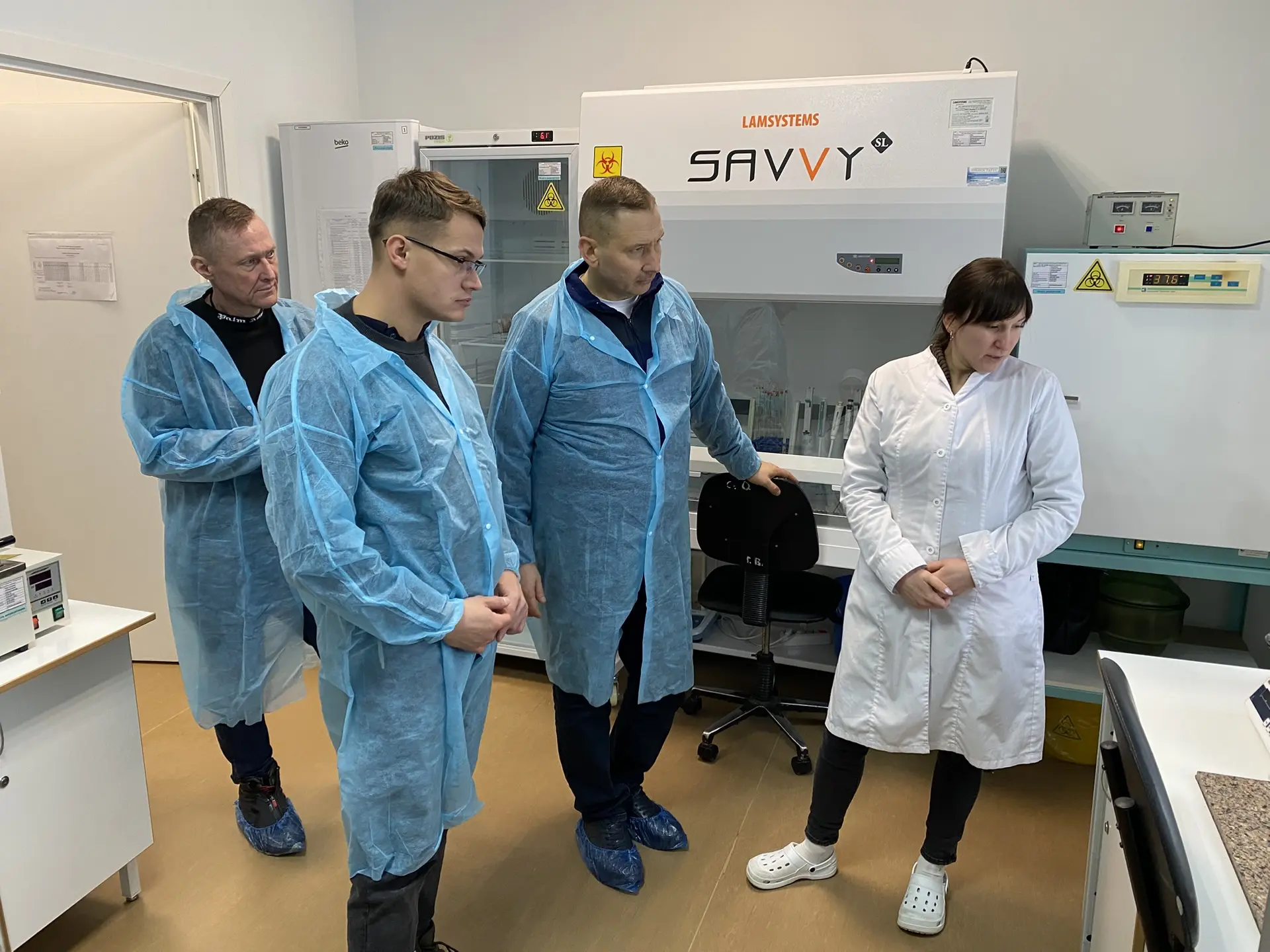 В ветеринарной лаборатории СББЖ Лужского района прошла встреча с сотрудниками и осмотр общего состояния. Здесь проводят диагностику болезней всех видов животных, исследования по определению качества и безопасности продовольственного сырья, кормов и пищевой продукции.